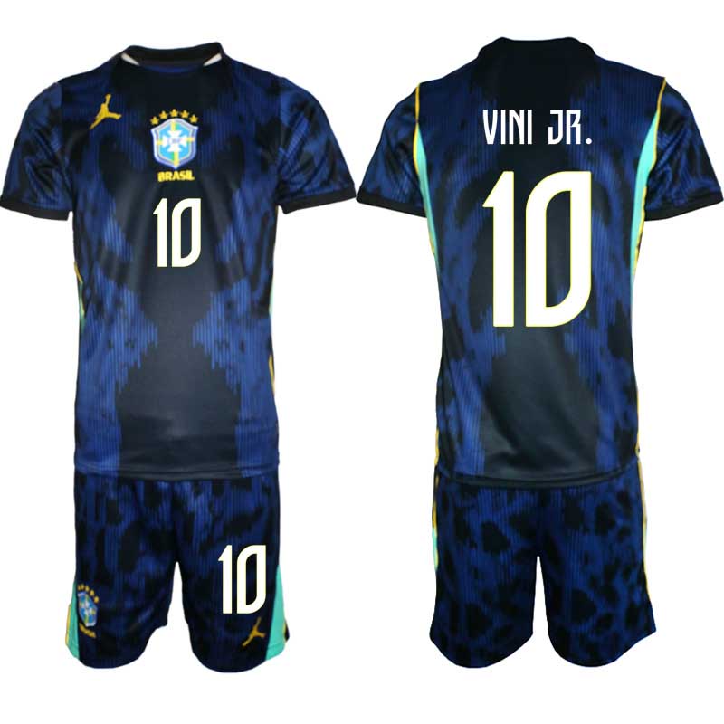 Brazilija dresi gostujoči za svetovno prvenstvo leta 2026 ima osupljivo kraljevsko modro podlago s črnimi poudarki (nekatere slike so morda videti temno modre, vendar je v resnici vse črno).Sprednji del dresa krasi drzen, nazobčan vzorec, sestavljen iz različnih odtenkov modre, kar ustvarja dinamičen in skoraj abstrakten dizajn. Nežne navpične črte so subtilno integrirane v dizajn in vzorcu dodajo globino in dinamiko.
