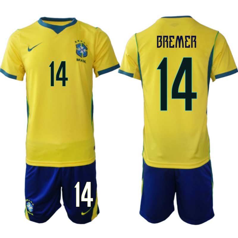 Moški Nogometni dres reprezentance Brazilija Gleison Bremer #14 Domači SP 2026 + Kratke hlače