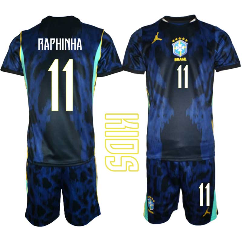 Najcenejši Otroški Nogometni dres komplet Brazilija Raphinha Belloli #11 Gostujoči SP 2026