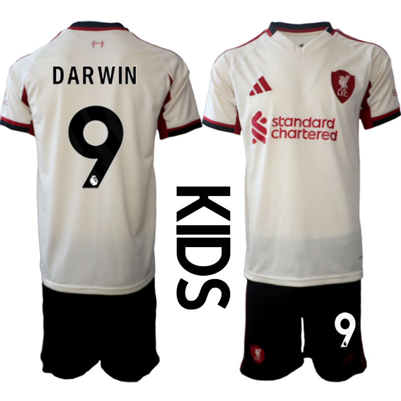 Otroški nogometni dresov kompleti Liverpool Darwin Nunez #9 Gostujoči 2025-26