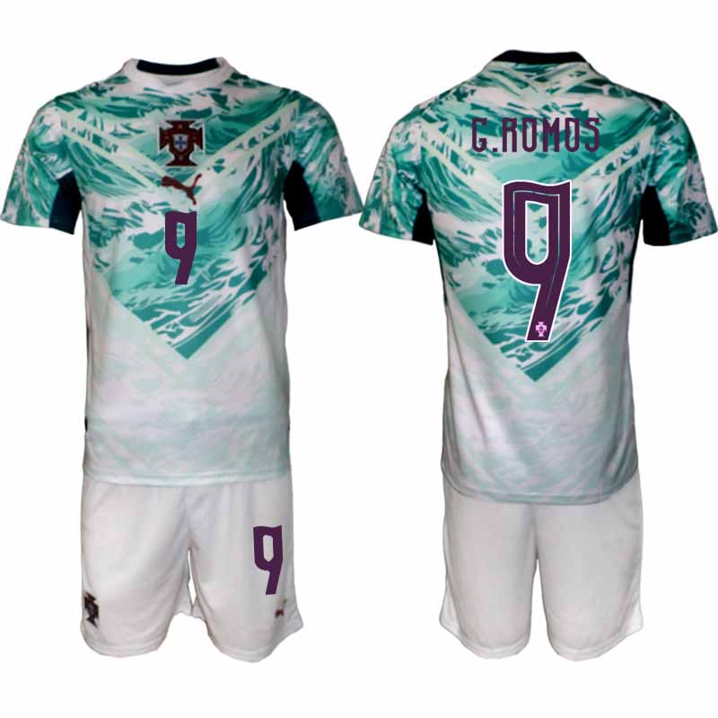 Poceni Nogometni dres Portugalska Gostujoči SP 2026 Gonçalo Ramos #9 + Kratke hlače